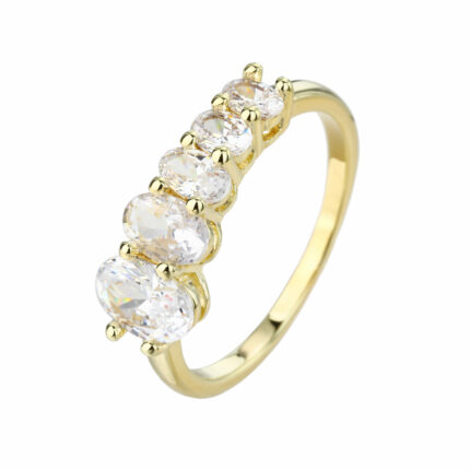 טבעת עשויה פליז בציפוי זהב 14K בשיבוץ אבני זרקון