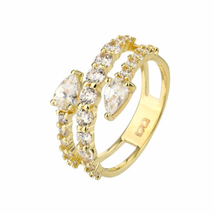 טבעת עשויה פליז בציפוי זהב 14K בשיבוץ אבני זרקון