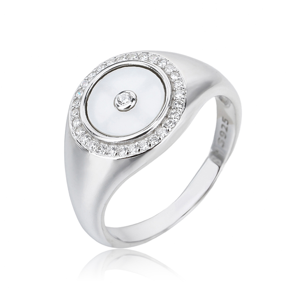 טבעת עשויה כסף אמיתי 925 בשיבוץ אבני זרקון