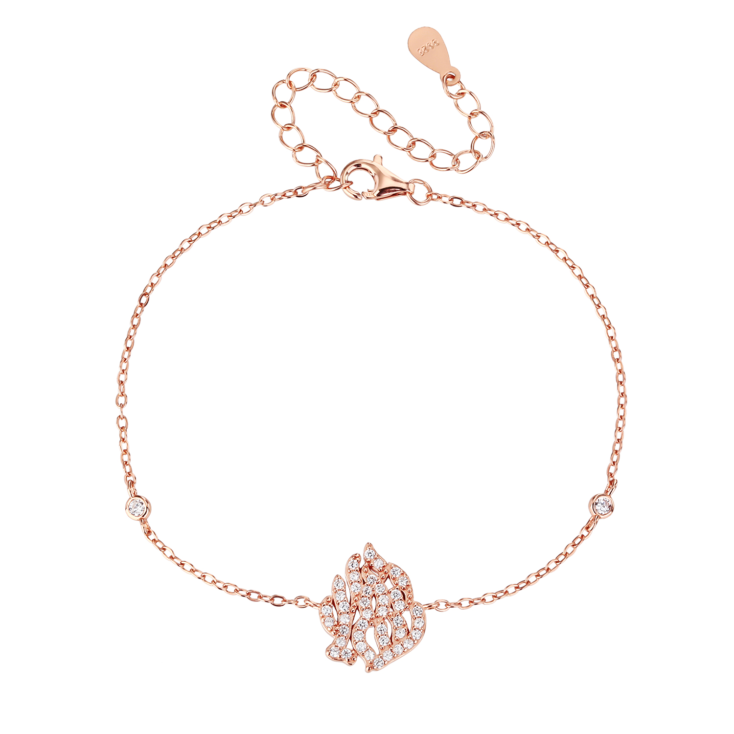 צמיד כסף אמיתי 925 האש שלי בציפוי זהב אדום משובץ באבני זרקון